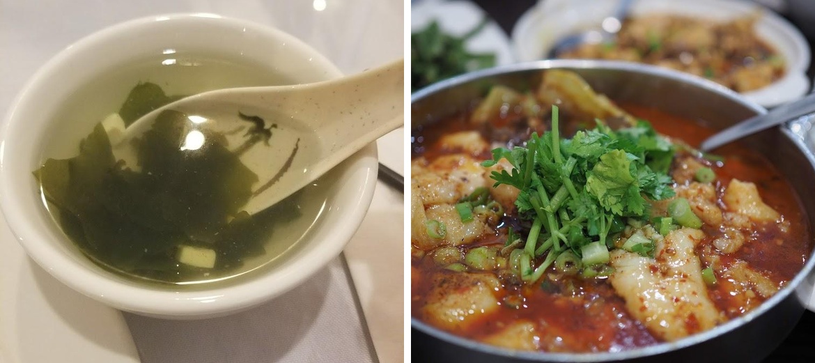 Silken tofu mixed with fresh scallion. Spicy.